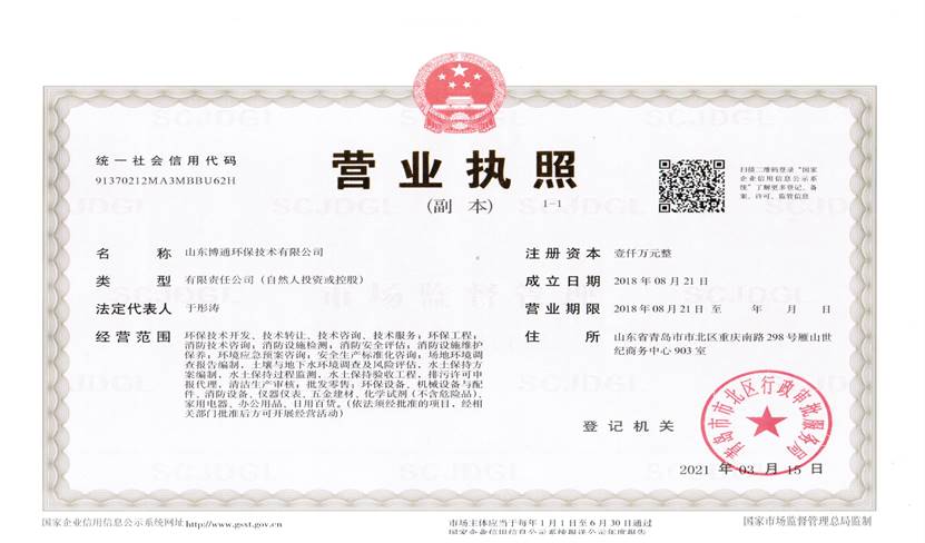 山東博通環(huán)保技術(shù)有限公司是一家專業(yè)從事環(huán)保、安全、消防的多元化技術(shù)服務(wù)公司,公司致力于打造專業(yè)的技術(shù)服務(wù)團(tuán)隊(duì),立足青島,輻射山東,服務(wù)范圍涵蓋:環(huán)保技術(shù)開發(fā)、技術(shù)轉(zhuǎn)讓、技術(shù)咨詢、技術(shù)服務(wù);環(huán)保工程;消防技術(shù)咨詢;消防設(shè)施檢測;消防安全評(píng)估;消防設(shè)施維護(hù)保養(yǎng);環(huán)境應(yīng)急預(yù)案咨詢;安全生產(chǎn)標(biāo)準(zhǔn)化咨詢;場地環(huán)境調(diào)查報(bào)告編制,土壤與地下水環(huán)境調(diào)查及風(fēng)險(xiǎn)評(píng)估,水土保持方案編制,水土保持過程監(jiān)測,水土保持驗(yàn)收工程,排污許可申報(bào)代理,清潔生產(chǎn)審核;批發(fā)零售:環(huán)保設(shè)備、機(jī)械設(shè)備與配件、消防設(shè)備、儀器儀表、五金建材、化學(xué)試劑(不含危險(xiǎn)品)。公司具有“建設(shè)手續(xù)一站式辦理,安環(huán)問題一條龍解決”的獨(dú)特優(yōu)勢,可為客戶提供高效、優(yōu)質(zhì)的安全、環(huán)保、消防管家技術(shù)服務(wù)。
